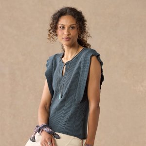 Subtle details make this allover rib sweater so special. with a hand-crocheted yoke and picot trim at V-neckline. Recycled wool/merino wool/cotton/nylon. Hand wash. Imported. Exclusive. Sizes XS (0?C2). S (4?C6). M (8?C10). L (12?C14). XL (16?C18). XXL (20?C22). Approx. 22l.