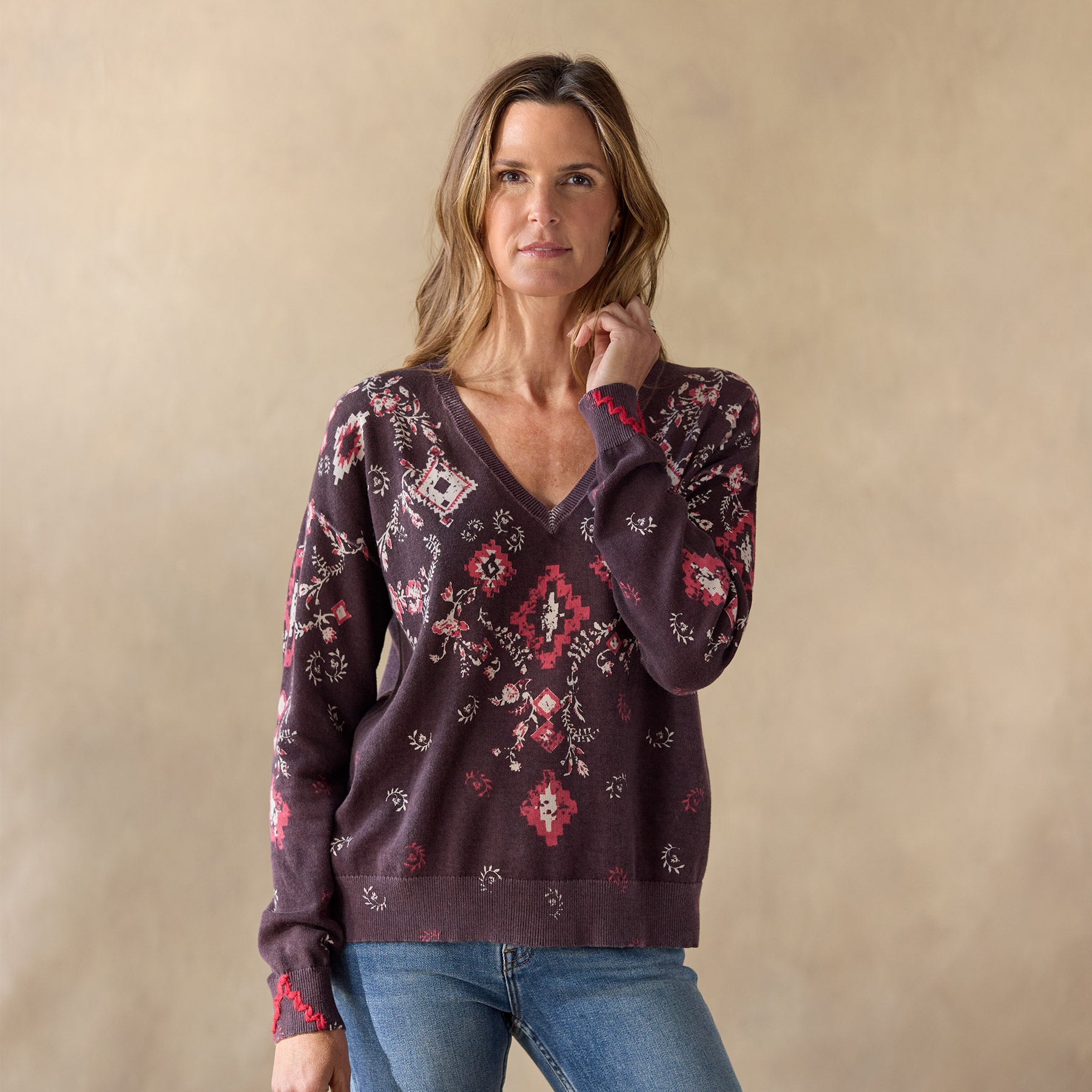 A new Sundance classic. with bandana/floral print front and back and hand-embroidered embellishment at the open V-neckline. Exposed seams. rib trim. relaxed fit. Cotton. Hand wash. Imported. Exclusive. Sizes XXS (00). XS (0–2). S (4–6). M (8–10). L (12–14). XL (16–18). Approx. 22l.