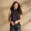 Our Nolia Top is the ultimate in casual elegance. The notch neckline henley is fashioned from the softest cotton slub; awash with alluring geometric embroidery and lace detail in the back neck. Elbow-length sleeves and straight hem. Machine wash. Imported. Exclusive. Sizes XS (0–2). S (4–6). M (8–10). L (12–14). XL (16–18). XXL (20–22). Approx. 23l.