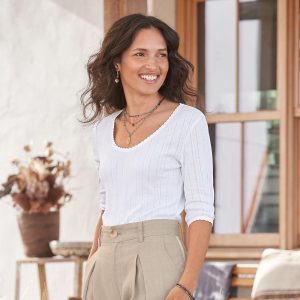 Perfect Pointelle 1/2 Sleeve Tee. Petite